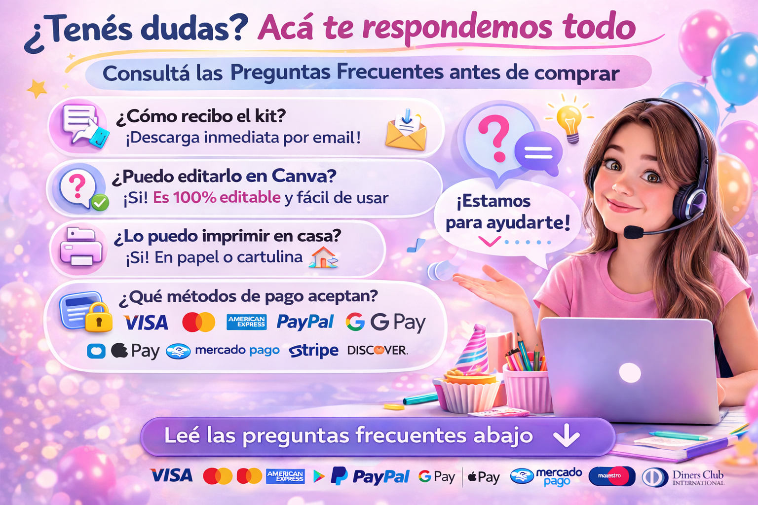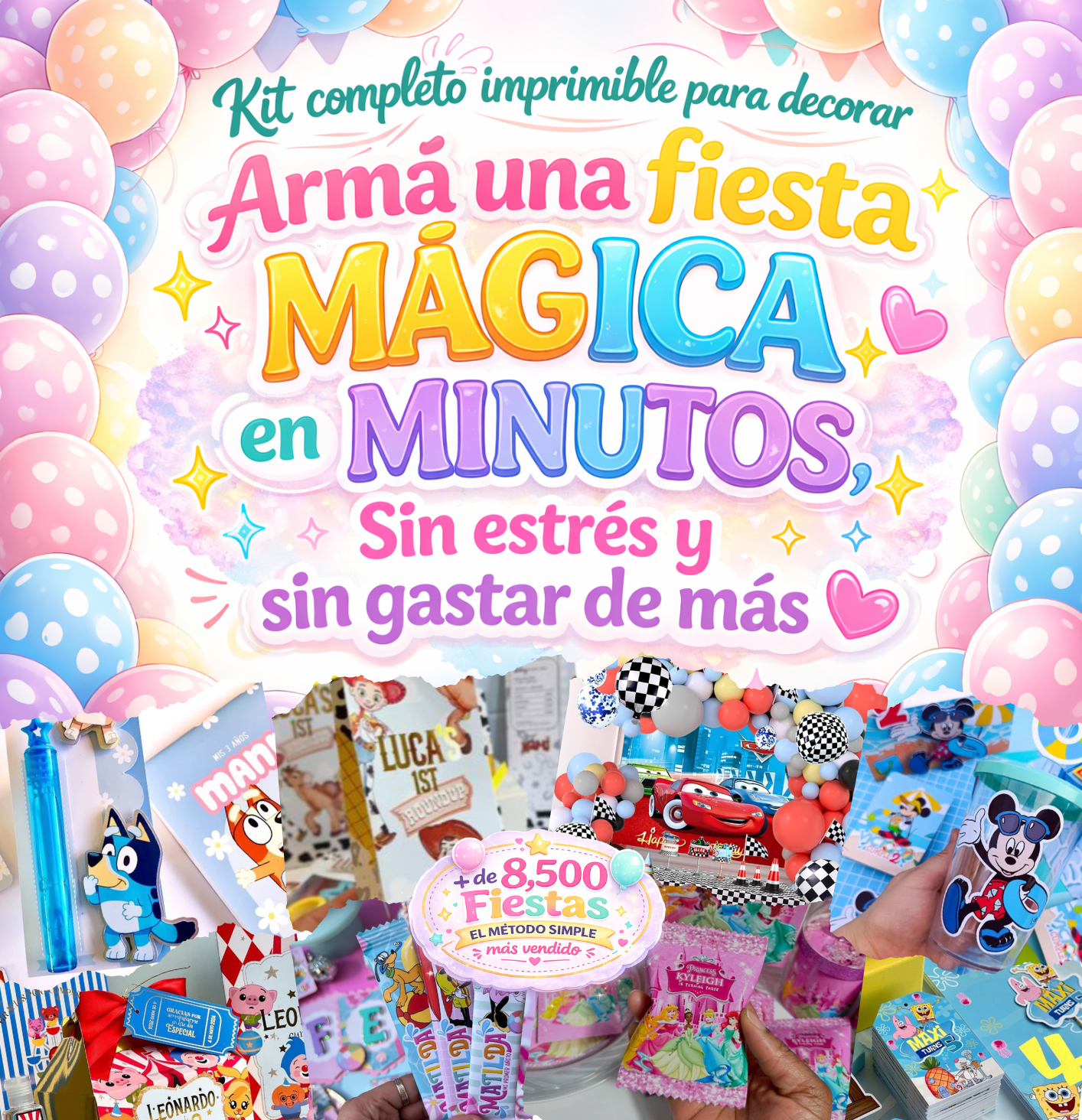Con el kit imprimible con +10.000 diseños personalizables, listos para descargar y armar. Todo lo que necesitas para una fiesta espectacular o para iniciar tu primer negocio de decoración.